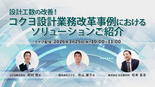 本セミナーでは、コクヨ株式会社(芝山工場)様が進めてこられた設計業務改革の取り組みを中心に、同社が抱えていた課題と、その解決に向けた日立製作所、株式会社エクサ、および日立ソリューションズ西日本による協働アプローチを総合的に紹介します。