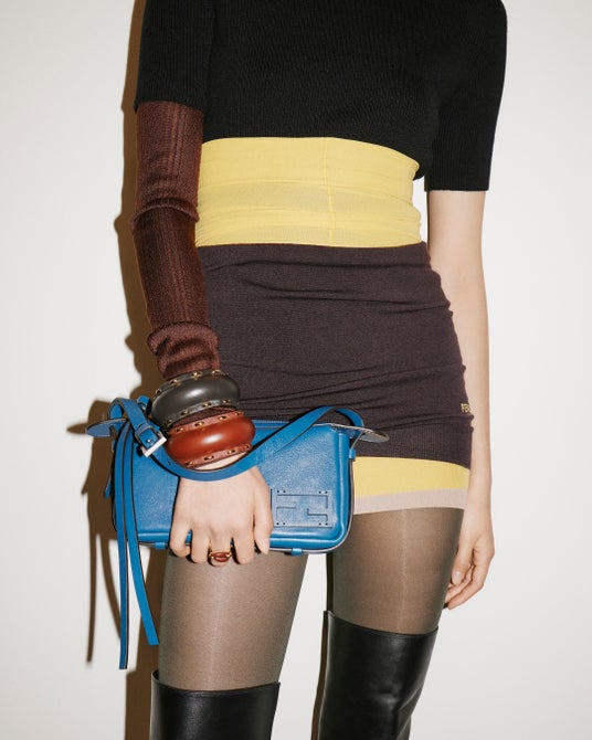 「シンプリー フェンディ」ファミリーには他にも、フェンディの卓越した素材使いを体現するアイコニックな「FF」ロゴジャカードとシアリングという、ワークマンシップとヘリテージに捧げられたバリエーションも展開されます。ブラックやダークハニーといったタイムレスなカラーで構成される豊富なカラーパレットに、鮮やかでシーズナルなブルーが加わり、この実用的なスタイルが持つ生来のエレガンスがさらに引き立てられています。