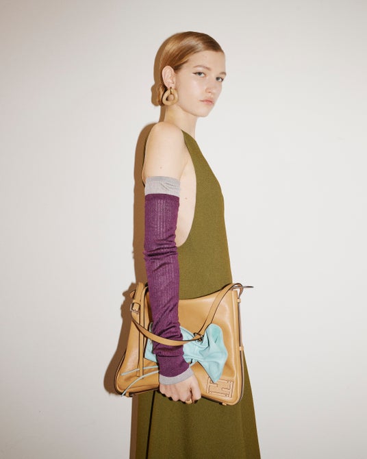2024年秋冬 ウィメンズコレクションの贅沢なまでの心地よさを体現する「シンプリー フェンディ」は、モダンなライフスタイルのさまざまなシーンに合うよう、収納力の高いイーストウエストシルエットのラージとミディアム、および大胆なミニの3つのサイズが展開されます。ホーボーショルダータイプのラージおよびミディアムサイズは、長さの調節が可能なストラップによりクロスボディバッグとしても使用することが可能で、ジッププラーに施されたノットディテールと絶妙にマッチしています。