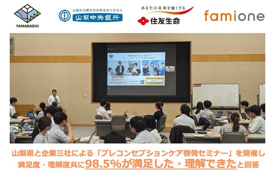 「子どもを願うすべての人によりそい 幸せな人生を歩める社会をつくる」をビジョンに掲げ、法人の従業員向け福利厚生や自治体の住民向け支援を行うヘルスケアサポートサービス「ファミワン」 https://famione.com/benefit/ などを展開する株式会社ファミワン(本社:東京都渋谷区、代表取締役:石川勇介、以下当社)は、山梨県のプレコンセプションケア推進の一環として行われる「プレコン啓発セミナー」にて、2024年8月5日、6日に山梨中央銀行(本社:山梨県甲府市丸の内、代表取締役頭取:古屋 賀章)の行員に対し、プレコンセプションケアをテーマとした教育研修を開催いたしました。