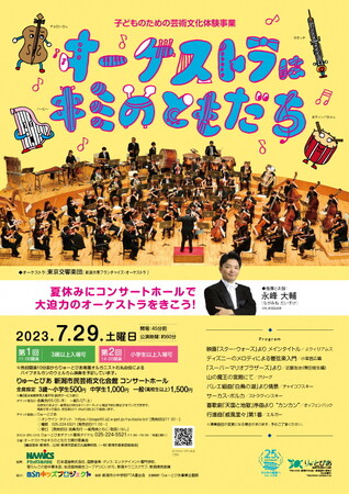 初めてオーケストラの演奏を聴くお子さんから大人の方まで楽しめるよう、東京交響楽団がクラシックの名曲はもちろん、ゲーム「スーパーマリオブラザーズ」、映画「スター・ウォーズ」の音楽など、おなじみの曲を楽しいお話付きで演奏します。