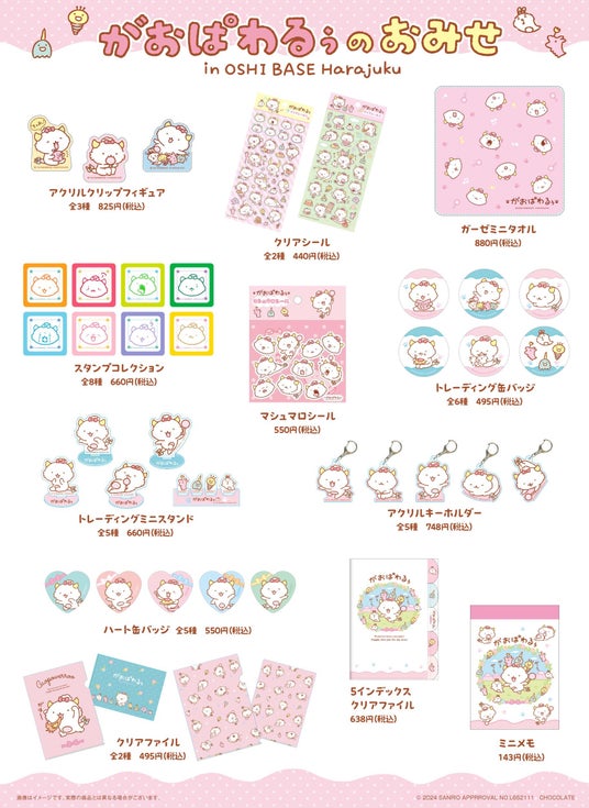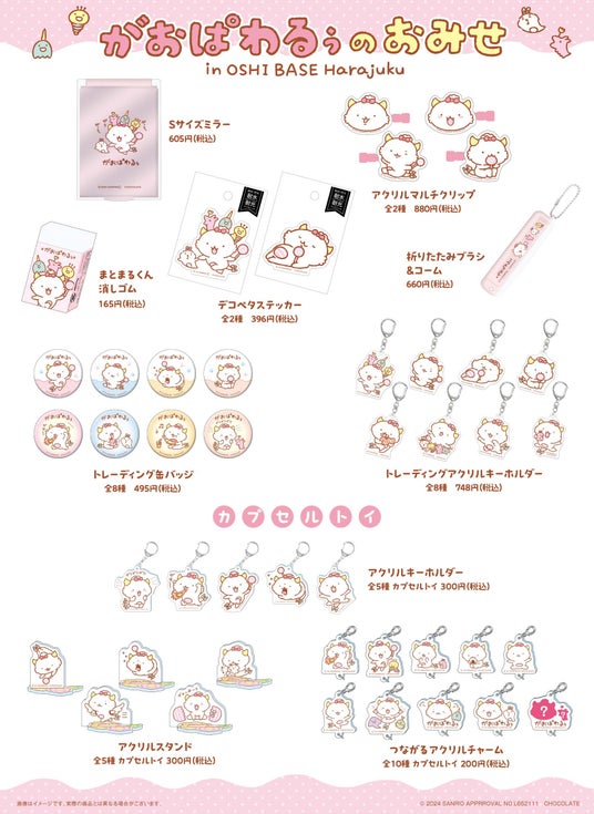 「がおぱわるぅのおみせ in OSHI BASE Harajuku」では、オンラインショップや他店舗から先駆けて、会期期間中「OSHI BASE Harajuku」にて「がおぱわるぅ」の初出しグッズが勢揃いします。
