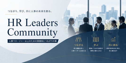 HR Leaders Communityは、「つながり、学び、共に人事の未来を創る。」をコンセプトに、人事マネージャー以上の方を対象として、似た課題を持つ人事リーダー同士の出会い、実践につながる知見や事例の共有、そして人事の未来を共に考え動き出す場を提供します。