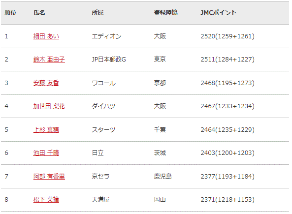▼その他の順位、各選手のポイント詳細はJMCシリーズ特設サイトでチェック!