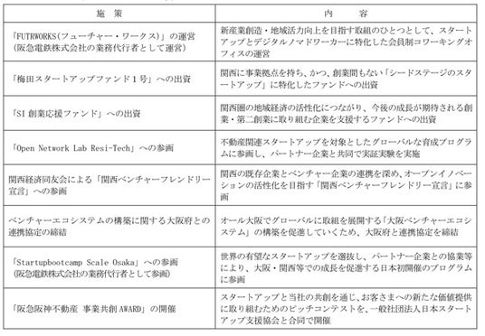 また当社及びグループ会社では、今後の急激な技術革新や社会的価値観の変化を見据えた既存事業の競争力強化や新規事業の開発に向けて、「阪急阪神不動産事業共創AWARD」の開催や「Open Network Lab Resi-tech」などのアクセラレーションプログラムへの参画および本ファンドによる出資検討を通じて、スタートアップとの共創を推進してきました。今後も本ファンドからの出資などを通じてスタートアップとの共創を推進し、先端技術や革新的な事業手法と当社の経営資源を融合させることにより、お客さまへの新たな価値の提供に取り組んでいきます。