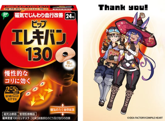 ピップ株式会社(本社:大阪市中央区、代表取締役社長:松浦由治)が販売する磁気治療器「ピップエレキバン」シリーズの「ピップエレキバン130」は、2025年6月26日(木)発売のNintendo Switch(TM) / PlayStation(R)5 / PlayStation(R)4用ソフト『届けろ!戦え!カラミティエンジェルズ』ゲーム内にて“回復アイテム”として登場します