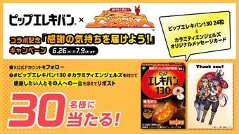 「届けろ!戦え!カラミティエンジェルズ」とのコラボを記念して、ピップエレキバン・ピップマグネループ公式Xアカウントにてプレゼントキャンペーンを実施します。2025年6月26日(木)~7月9日(水)の期間、公式Xの該当投稿に指定のハッシュタグを付けてリポストして参加いただくと、抽選で30名様にピップエレキバンとカラミティエンジェルズのオリジナルデザインのメッセージカードがセットで当たります。