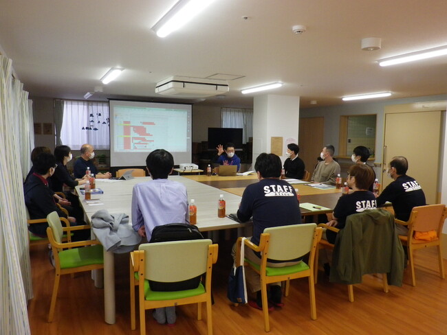 豊中市内で特別養護老人ホームを運営する3法人が、応援職員受け入れ準備のための研修会を実施しました。普段は交流のない法人の職員同士が一堂に会して、法人の現状や今後のスケジュールなど体制の構築に向けた活発な意見交換が行われました。