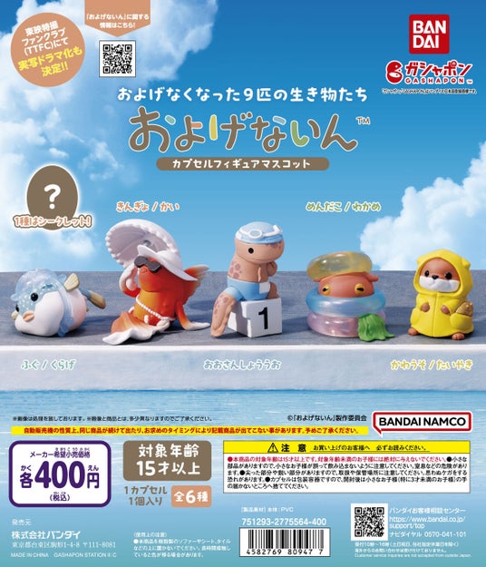 『およげないん カプセルフィギュアマスコット』(1回400円・税10%込、全6種)を2025年1月第5週より順次発売