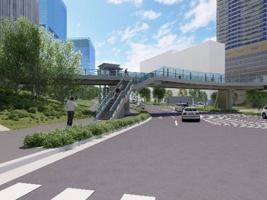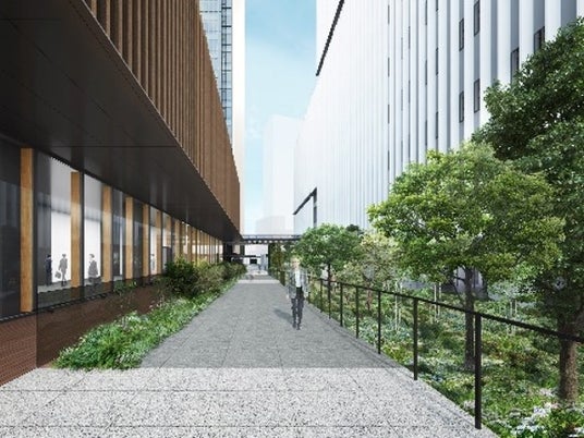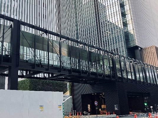 ▲虎ノ門ヒルズ駅方面への歩行者デッキ※ ※令和7年3月完成予定