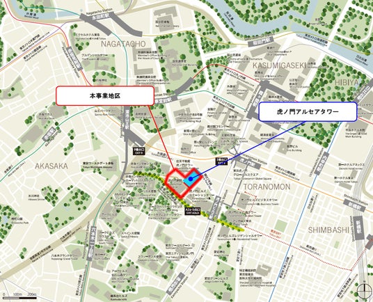本事業地区は、霞ヶ関エリアに近接するとともに、外堀通り、桜田通り、六本木通りなどの幹線道路や東京メトロ銀座線の虎ノ門駅、日比谷線の虎ノ門ヒルズ駅、南北線・銀座線の溜池山王駅にも近接する、交通利便性に優れた場所に位置しています。