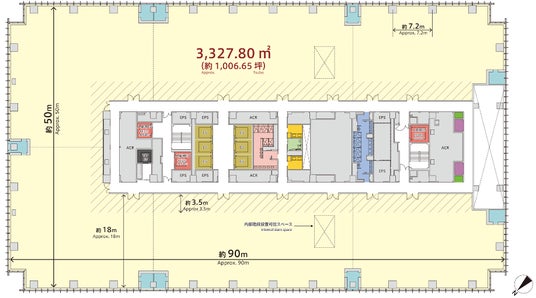・オフィスの天井高は2,900mmを確保。1フロアの床面積3,300平方メートル 以上。使いやすい整形と圧迫感の少ない快適な空間を確保。