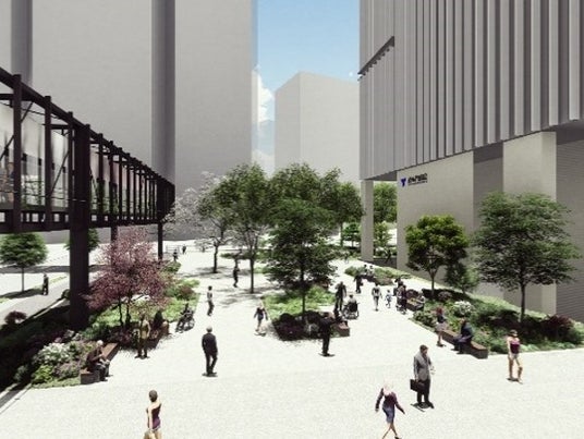▲溜池山王駅方面への歩行者デッキ完成予想イメージ※ ※令和11年度完成予定