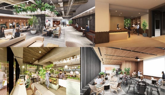 ・1,2階にワーカーをサポートするマルシェなどの商業施設を整備。