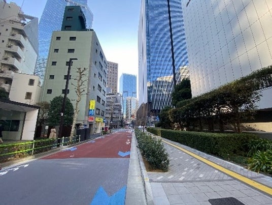 ・本事業地区南側では、隣接する赤坂インターシティAIRから続く赤坂・虎ノ門緑道を延伸し、さらに広場等を一体的に整備することにより、港区道第1014号線沿道に約4,500平方メートル の緑化空間を整備します。