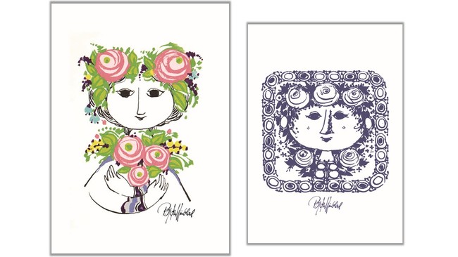 ビヨン・ヴィンブラッドが描いた花を髪に飾った女性の作品、彼が色付けしたオリジナルカラーを生かし、ミニポスターを製作しました。