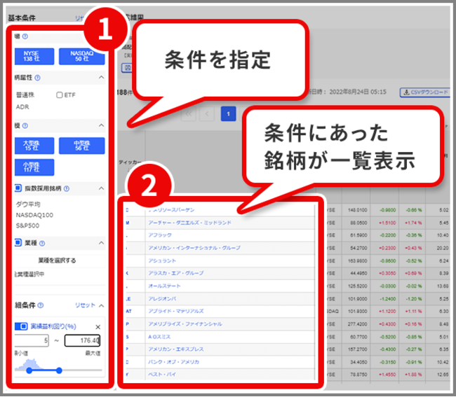 - 58種類の豊富な検索条件と「楽天証券おすすめスクリーナー」で、最適な銘柄を探せる! -
