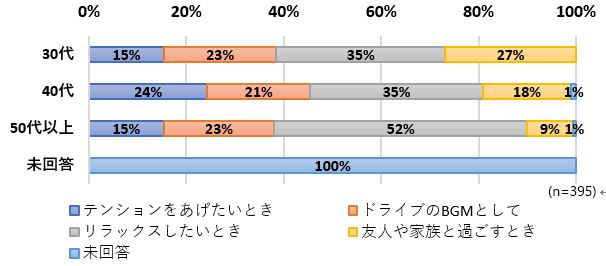 約半数(46%)が「リラックスしたいとき」に聴きたくなると回答。