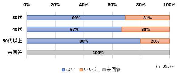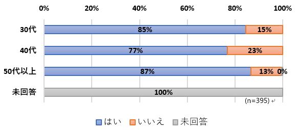 調査対象者に、昭和生まれの歌を好んで聞くことがあるか聞いたところ、「はい」と回答した人は全体の83%を占め、8割以上の人が昭和歌謡を楽しんでいることがわかりました。年代別でみると、 30代で85%、40代で77%、50代以上で87%となり、昭和世代をよく知らない人が多い30代でも好んで聞かれていることがわかりました。