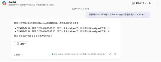 株式会社ヌーラボ(本社:福岡県福岡市、代表取締役:橋本正徳、以下 ヌーラボ)が提供しているプロジェクト・タスク管理ツールの「Backlog」は、Microsoft Copilot for Microsoft 365(以下 Copilot)との連携機能をリリースしました。この機能により、Microsoft Teamsのチャット内で自然言語でのBacklog課題検索が可能になります。Copilotと連携した日本の企業が提供するサービスは、Backlogが初となります。