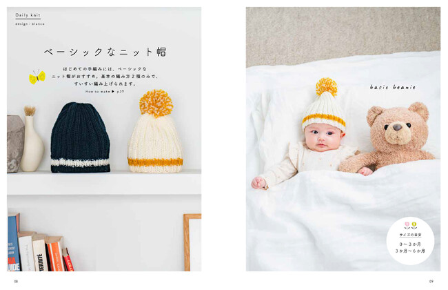 ふだん使いできるニット帽などの実用的なアイテムや季節のイベントやハーフバースデーなどの特別な日に使えるニットこものが編める本です。