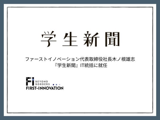 株式会社ファーストイノベーション(本社:東京都中央区、代表取締役社長:木ノ根雄志、以下ファーストイノベーション)の代表取締役社長 木ノ根雄志が、大学生向けフリーペーパー『学生新聞』のIT統括に就任したことをお知らせいたします。