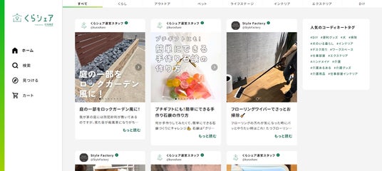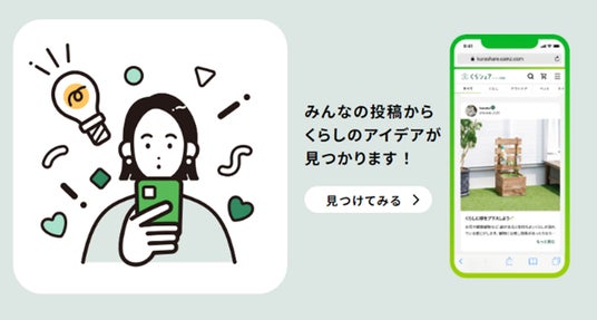 「くらシェア」は、カインズの商品を組み合わせた「くらしのアイデア」を投稿し、共有することができるオンラインサービスです。「始めてみたいことがあるけど、何から準備をすればよいかわからない」、「ぼんやりと頭ではイメージしていても、具体的には何を買えば実現できるかわからない」といった日々の生活の中に潜む困りごとを、創意工夫あふれる投稿が解決します。