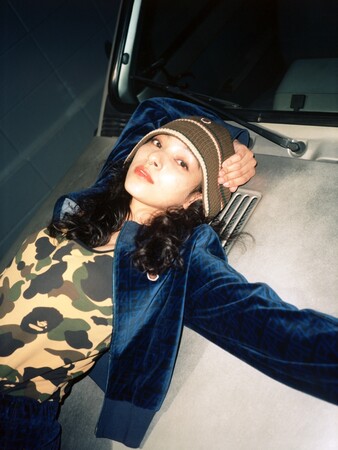 レディースでは今シーズンのハイライトの一つでもあるCOOKIE CAMOのVARSITY JACKETをメインアイテムに撮影。全てフイルムカメラを用いて、BAPE(R)︎の新作のパターンをレトロな技法で温かみのある世界観に仕上げています。