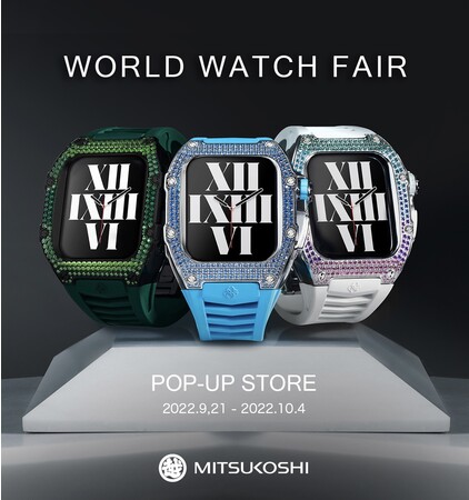 9月21日に名古屋栄三越にて開催される、約50ブランドが集結する国内最大の時計の祭典「第24回 2022 三越 ワールドウォッチフェア」にゴールデンコンセプトのポップアップストアがオープンいたします。名門ブランドの数々の時計が一同に揃う祭典に、「高級Apple Watchケース」という新たなジャンルを築いた「ゴールデンコンセプト」の登場で高級時計市場におけるニーズの一つ「ステータス」にも一石を投じます。