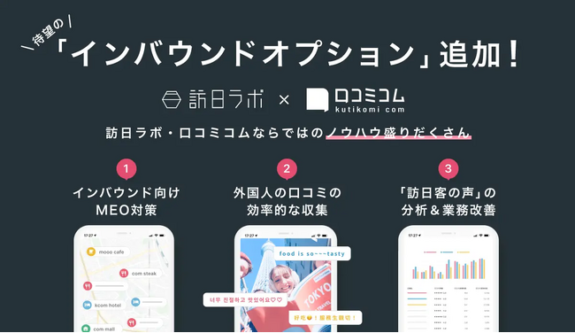また、口コミコムを提供するmovは、国内最大級のインバウンド総合メディア「訪日ラボ」を運営しており、その豊富な知見やノウハウを活かしてMEO対策をサポートします。