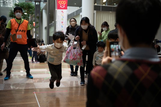 立ち幅跳びをするお子様と応援するご家族(2023年開催時)※掲載許可を得ています。