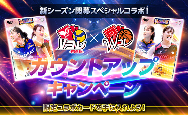 Vコレ-WOMEN-はV.LEAGUEに所属する女子バレーボール選手の、WコレはW LEAGUEに所属する女子バスケットボール選手の、それぞれのリーグでの試合中のプレーシーンを中心としたデジタルトレーディングカードを無料で集めることができるサービスです。今回は10月に両リーグの新シーズンが開幕することを記念し、Vコレ-WOMEN-とWコレでコラボレーションを行い、両サービスのユーザーが共に楽しめる企画をご用意いたしました。