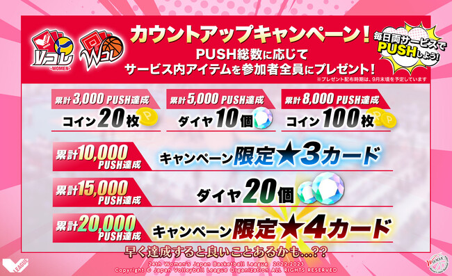 ■両サービスのPUSH総数に応じて、コラボカードやダイヤを参加者全員にプレゼント!