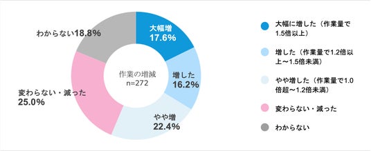 税理士にインボイス導入後に業務量が増えたかどうか尋ねると、ほぼ全ての税理士が「増した」と答えました。「増した」と回答した中でも、大幅増(1.5倍以上)が最も多く46名(44.7%)で、「1.2倍~1.5倍」が25名(24.3%)、「1.0倍~1.2倍」が27名(26.2%)でした。内訳を聞くと「領収書の確認」「請求書の確認」「記帳代行業務(記帳業務、仕訳の確認)」との回答が多く、主に「細かい作業」が増えた実態が明らかになりました。