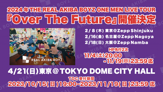 ISARIBI株式会社(代表:榊原敬太/本社:東京都千代田区)の運営するクリエイターレーベル「METEORA st.」は、所属アニソンダンスパフォーマー「REAL AKIBA BOYZ(以下 RAB)」のONEMAN LIVE TOUR 2024『Over The Future』のキービジュアルを公開した。本ライブツアーの視聴券は既に販売開始となっている。