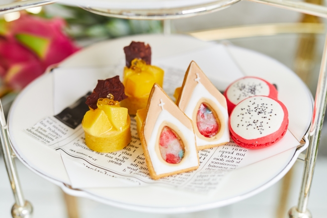 <下段>マンゴーのタルト/チャペルクッキー/ドラゴンフルーツのマカロン