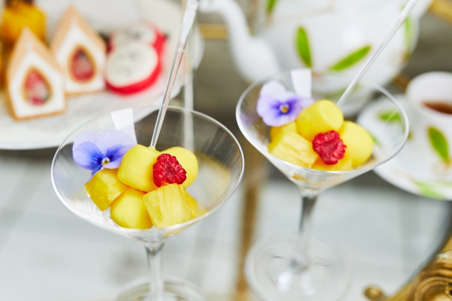 真夏の2か月間限定で販売する「ハワイアン アフタヌーンティー」は、マンゴーのタルトやパイナップルのレアチーズケーキ、ドラゴンフルーツのマカロン等トロピカルフルーツをふんだんに使用したスイーツに加え、アボカドとガーリックシュリンプサンドや、モコチキンハワイアン風といったハワイアンフードをご堪能いただける贅沢な三段スタンド。結婚式場の専任パティシエ特製スイーツと軽食を、優雅な空間でお召し上がりいただけます。