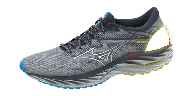 「WAVE RIDER 27」は初心者から中級者に向けたランニングシューズで、気持ちよく前に進む走り心地が特長です。今回のモデルではかかと部分の構造を見直し、さらなるアッパーのフィット感の向上を目指しました。またソール部には、前モデル(「WAVE RIDER 26」)と同じミズノ独自の高反発ソール素材『MIZUNO ENERZY』とクッション性と安定性を両立する『MIZUNO WAVE』を搭載することで、スムーズな走りをサポートします。