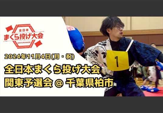 その「全日本まくら投げ大会」への出場権をかけた予選大会「全日本まくら投げ大会 千葉予選会 2024」が11月4日(月・祝)に千葉県柏市にて開催予定です。優勝チームは、2025年2月下旬に静岡県伊東市で開催される「全日本まくら投げ大会」への出場権を獲得することができます。