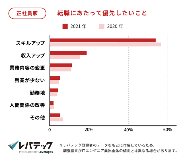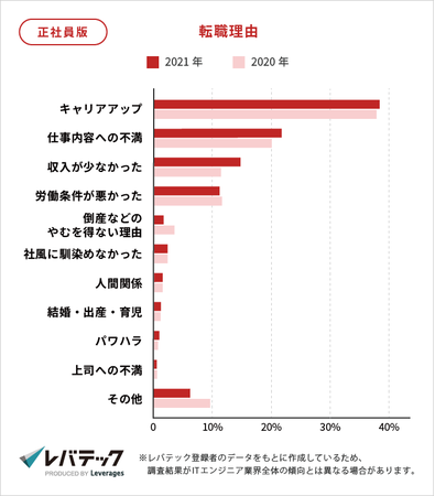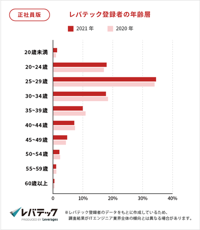 レバテック株式会社が運営するITエンジニア・クリエイター専門転職エージェント、レバテックキャリアは、2020年から2021年に新規登録された求職者データをもとに、現在のITエンジニアの転職動向を探るための調査を実施しました。