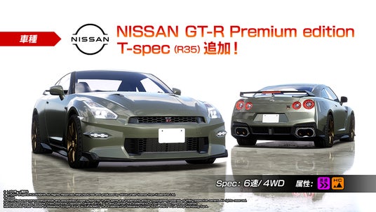 SUZUKIから「CARRY KC(DC51T)」、NISSANから「NISSAN GT-R Premium edition T-spec(R35)」が追加されました。