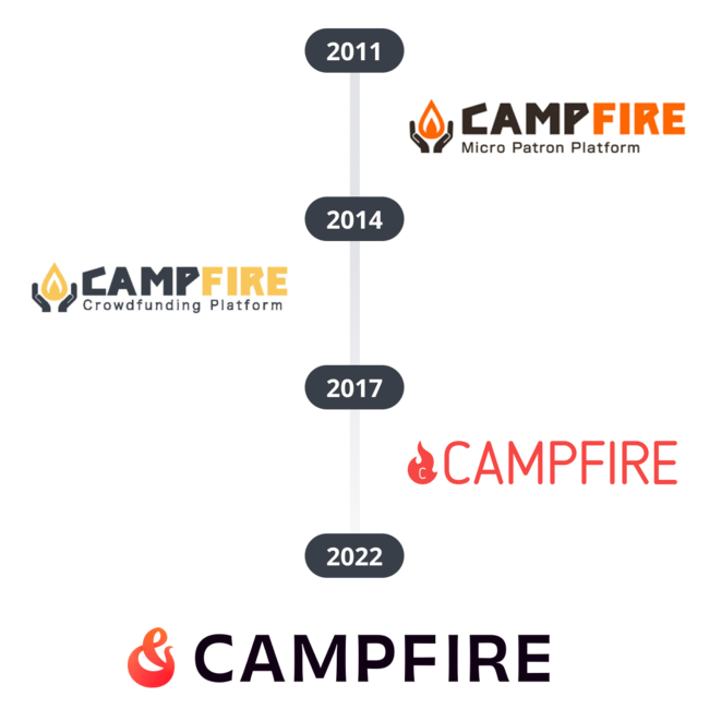 これまでのCAMPFIREのロゴにある炎のシンボルは、創業当時からの『小さな火を灯しつづける』という想いを反映したものです。誰かの挑戦を見て、心の火が着火され、「自分も何かに挑戦したい!」と思う人から挑戦の連鎖が生まれる。その熱量を応援し、育てる意味を込めたシンボルとして、形を変えながらも創業時から大切に育んでまいりました。