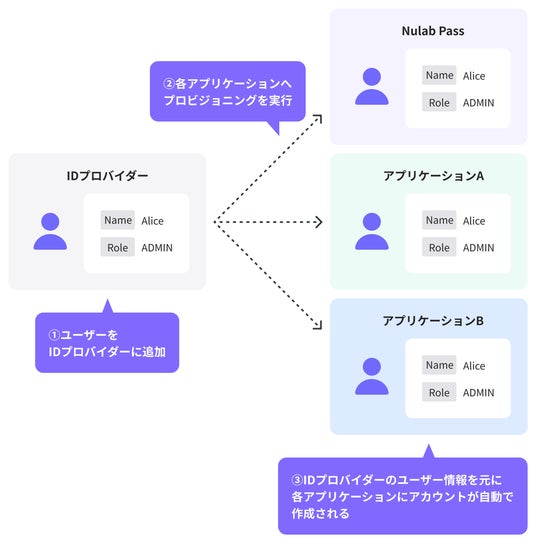 ※Microsoft Entra IDのアプリケーションギャラリーにて提供しているNulab Passアプリは、β版リリース時点ではユーザープロビジョニングに対応していません。正式リリース以降はご利用可能です。