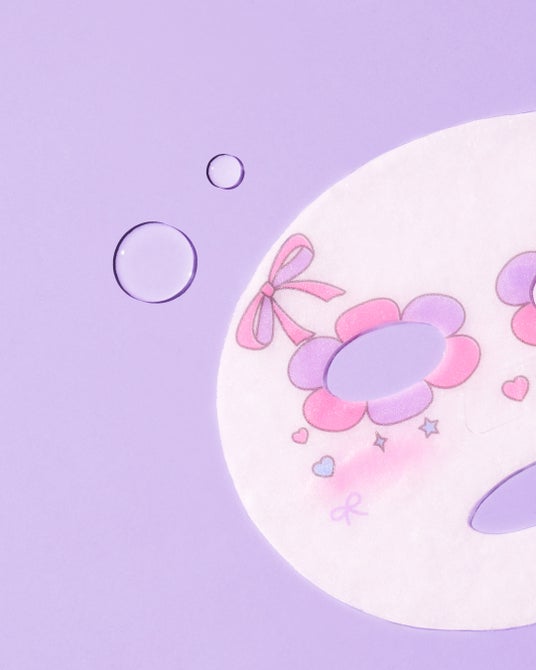 1.お顔につけた瞬間、おめめに可愛いお花のデザインやさしく密着するピュアコットン100%のとぅるとぅるシート(ハート)