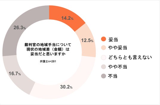 弁護士ドットコム株式会社(東京都港区、代表取締役社長 兼 CEO 元榮 太一郎)は、弁護士ドットコム(R)の会員弁護士281人(元裁判官7人を含む)を対象に、裁判官の地域手当に関する調査を行いました。