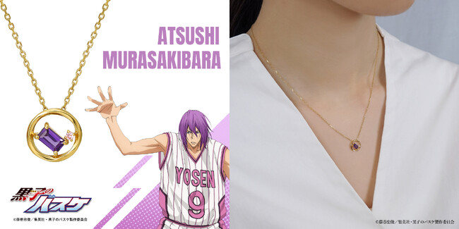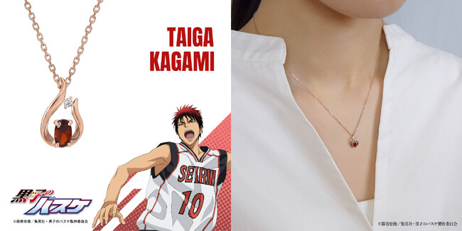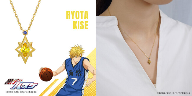 ラインナップは、⿊子テツヤ、⽕神大我、⻩瀬涼太、緑間真太郎、青峰大輝、紫原 敦、赤司征十郎で、それぞれをイメージしたネックレスを期間限定で受注販売いたします。