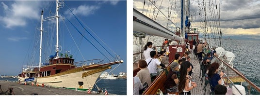 1974年にポーランドで建造されたスクーナー型(2本マスト)帆船。かつてエーゲ海や地中海などで「海の貴婦人」「地中海の貴婦人」として華やかな社交界で活躍した歴史ある船舶です。著名人(指揮者カラヤン、女優エリザベス・テーラー、フェラーリ一族ほか)もかつて乗船したことで知られています。現在は清水港を母港に、貸切クルーズやパーティー、結婚式、企業イベントなど、さまざまな用途でご利用いただいております。