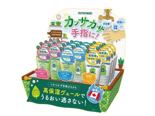 ↓↓ 店頭陳列イメージ『グリソメド ハンドクリームR(2種類)』『グリソメド ハンドクリームR ソフト(フローラル)』