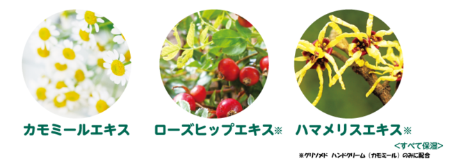 ●カモミールエキス…手荒れを防いで健康的な手肌を保ちます。