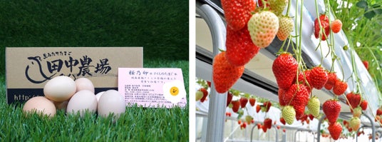 深谷市内の人気養鶏場である「田中農場」「愛鶏園」「花園たまや」の新鮮な卵や、埼玉県オリジナル品種「あまりん」をはじめとした、地元生産者直納のいちごを販売します。